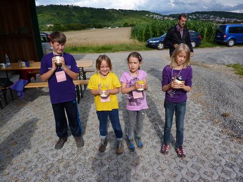 Beim Turnier "Schlagt die Betreuer" stellten die Buntspechte ihre erwachsenen Herausforderer mühelos in Schatten als es ums Stapeln, Ertasten, Erraten und natürlich ums Jubeln ging. Die Nachtwanderung, das anschließende Lagerfeuer mit Flüsterpost und natürlich das nicht enden wollende Geflüstere im Strohlager bildeten den Abschluss des ersten Tages.