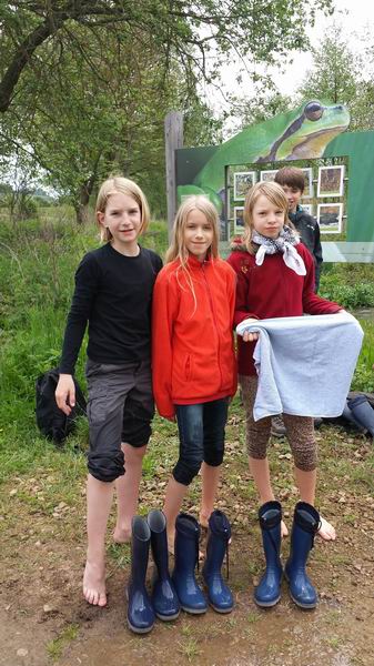 Ganz genau unter die Lupe genommen wurde, der vor wenigen Jahren renaturierte Riesenbach. Haben sich die Anstrengungen gelohnt? Wie sieht es mit der Wassergüte aus? Welche Tiere und Pflanzen leben in diesem Lebensraum? In vielen Windungen schlängelt sich jetzt der Bach umsäumt von Bäumen und vielen Sträuchern in Richtung Mündung zur Zaber. Sehr viele Bachflohkrebse, Eintagsfliegen- und Köcherfliegenlarven wurden im Bachlauf entdeckt und sprechen für einen sauberen Bach. Nasse Füße gab es nicht nur für die drei Graureiher im Bach, sondern trotz Gummistiefel für so manchen jungen Naturschützer. Zum Abschluss erzeugten zwei fliegende Höckerschwäne ein weithin hörbares singendes Fluggeräusch und sogar eine Nilgans ließ sich an der Ehmetsklinge blicken.
