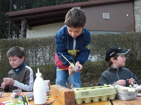 Viel Spaß machte den Kindern das Basteln der Hasen- und Hühnereierbecher, in denen die frisch gefärbten Eier stolz nach Hause transportiert werden konnten.
